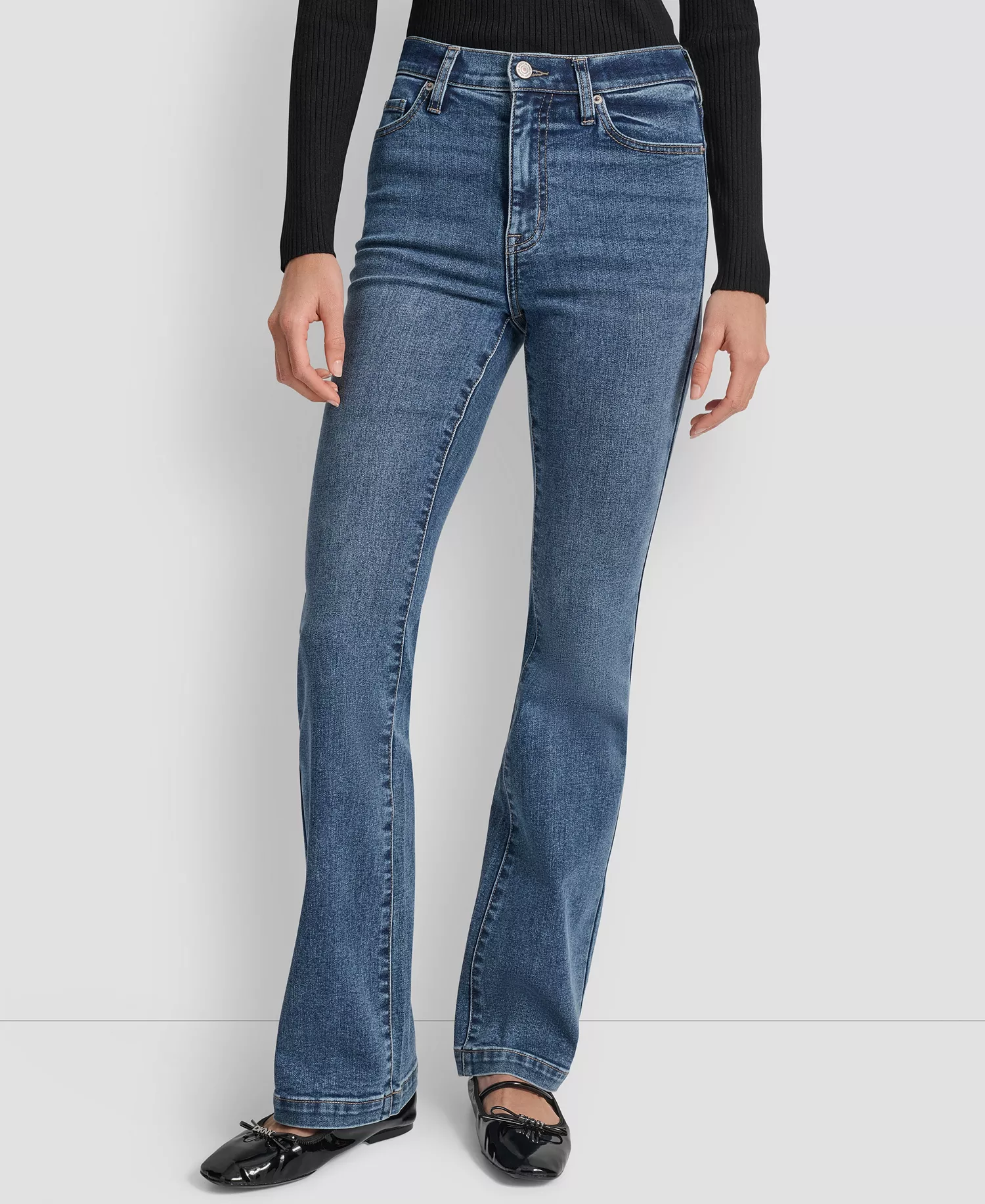Подробности о продукте Окунитесь в неподвластный времени стиль с этой парой от DKNY Jeans. Привлекательная завышенная талия удлиняет фигуру, а расклешенная брючина создает сбалансированный силуэт, удлиняющий ноги. Классическая застежка на молнию и пуговицу и пять карманов сочетают в себе повседневную функциональность и элегантную изысканность. Особенности продукта Импортировано Застежка-молния на пуговицы; петли для ремня Пять карманов Руководство по женским джинсам Размер и посадка Прибл. рост модели 5 футов 10 дюймов. Прибл. внутренний шов: 30 дюймов Высокий рост; ок. подъем спереди: 11 дюймов; прибл. подъем сзади: 15-1/2 дюйма; ок. отверстие для ног: 21 дюйм Материалы и уход Машинная стирка 74 % хлопок, 19 % полиэстер, 5 % вискоза, 2 % спандекс.